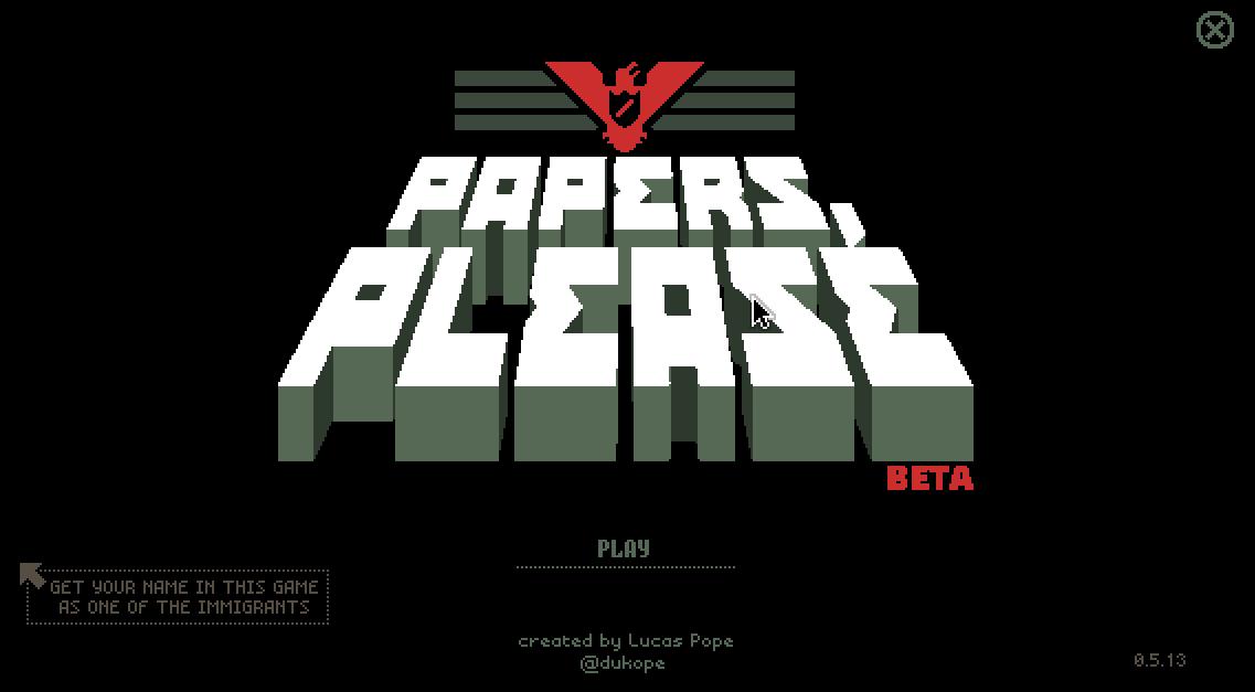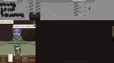 Papers, Please, by Lucas Pope, is still in beta, but it's already compellingly playable. Set in the same post-Soviet dystopia as Pope's previous game, The Republia Times (in which your role was editor-in-chief of the state-controlled newspaper, ordered, at gun point, to keep the people happy and docile through story selection), Papers, Please is, mechanically, very simple. Potential immigrants step up to your window, give you their documents, and wait as you peruse them for forgeries or mistakes. If you don't find any, you take your giant stamper machine and CLUNK "Approved" on their passports. If they do, you reject them (or interrogate them to figure out the meaning behind the discrepancies). The heart of the gameplay is a series of very basic rules that you apply to every set of documents - are the dates right? The issuing country? Do they have the right visa? It's essentially a game of pattern recognition and anal-retentive detail-noticing, and with the wrong implementation, it could be incredibly dry. But somehow, here, it isn't.