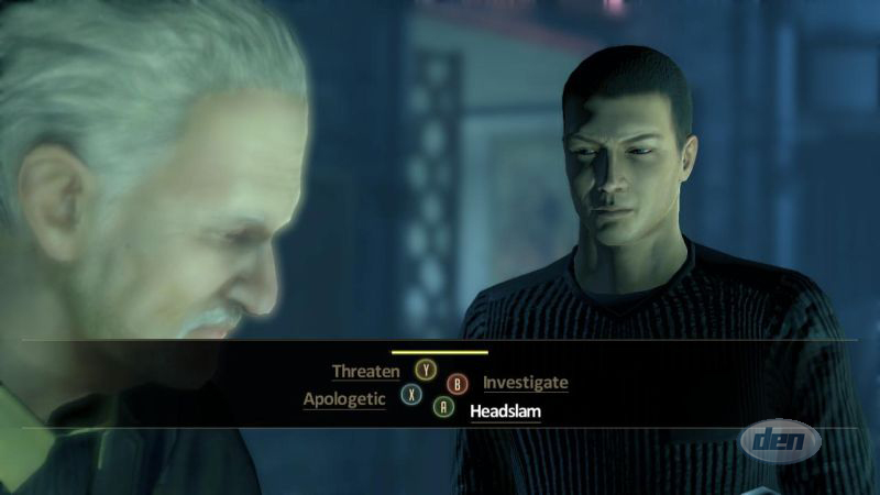 The game it put me in mind of, unsurprisingly, was Indigo Prophecy (Fahrenheit outside the US and on PC), the first game I can think of that put conversations under the time pressure they would have in real life and assign consequences to how you speak. Of course, the conversational choices in Indigo Prophecy are eventually revealed to be largely meaningless, and are eventually consumed by mindless QTE combat, so it might not be the best game to use as a model.