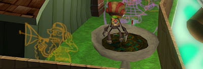 Now, to be fair, Psychonauts gets half of its collection sidequest stuff right. The game is divided between the 'real' world and the mental world, and in the real world, collection works like this: Collectible items (cards, challenge markers, scavenger hunt items, and brains) are brightly colored and mobile, making them pop against the game's backgrounds. You're given a counter in each area, telling you how many many of each collectible are left. And, most importantly, each collectible has a reasonable amount of worth. Every collectible is worth either 1, 1/2, or 1/9th of one of 101 Psi-Ranks (the game's leveling-up aspect, which is completely based on collection), and the challenges associated with each collectible are proportional to the value. A Psi-card (1/9th of a rank) is easy to grab, while a Psi Challenge Marker (1 whole rank) will involve some serious searching and acrobatics.